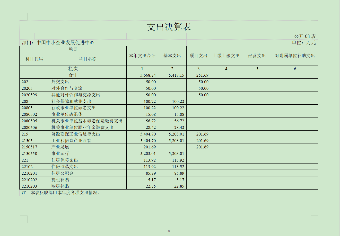 六、一般公共預算財政撥款基本支出決算表