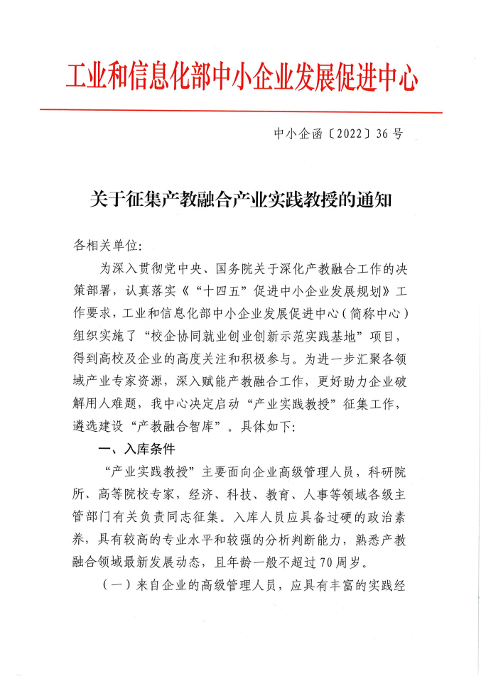 關(guān)于征集產(chǎn)教融合產(chǎn)業(yè)實(shí)踐教授的通知